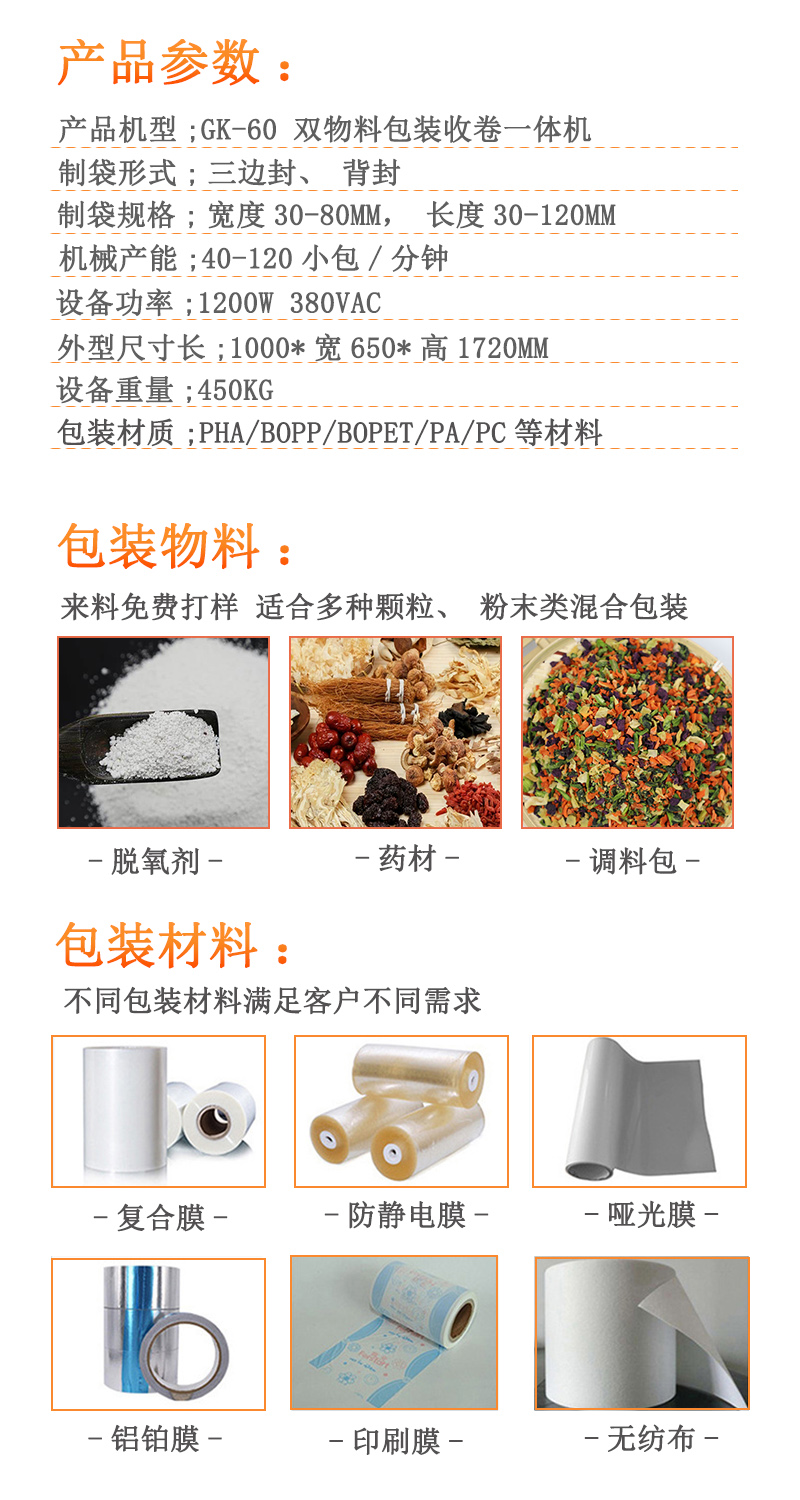 根據(jù)物料種類和袋型要求來配備包裝機 以達到客戶要求。
